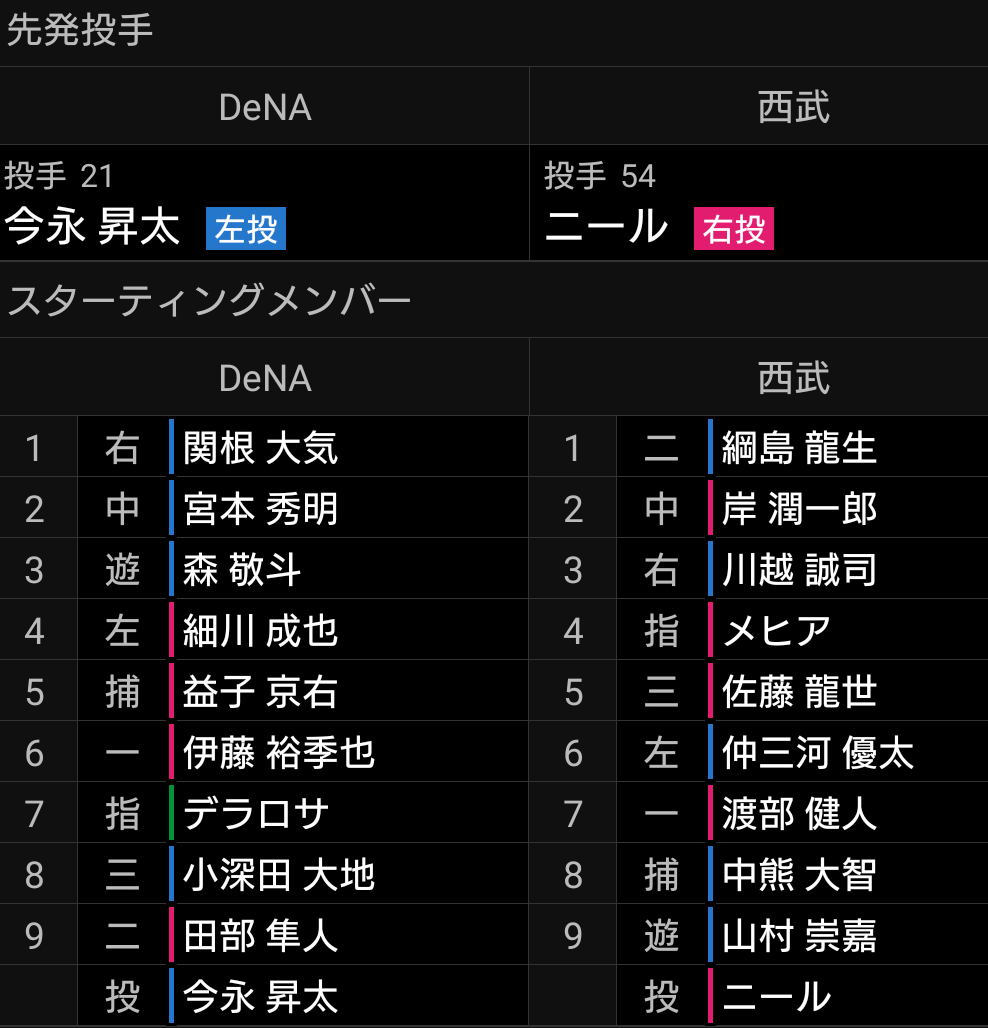 🆚DeNA vs 西武https://t.co/3wvqArg9ea#baystars #イレブン・DeNA pic.twitter.com/cBQbLglcMV