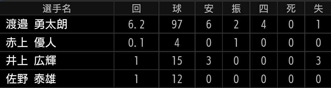 ストレートに球威があり、スライダーでも空振りが取れる投手ですが、防御率も6.00と打ち込まれてしまいました。渡部