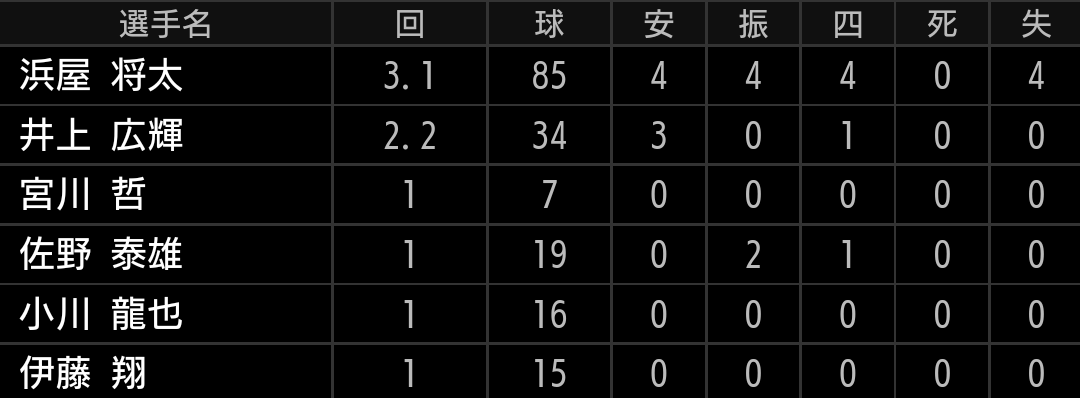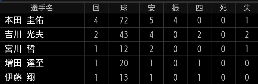 先発本田はまずまずの投球でしたが、中継ぎ登板の吉川、宮川が打たれました。