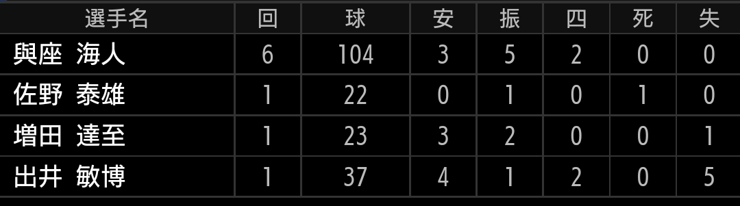 今日もスライダー、フォークと投げて、投球に変化を加えていましたが、増田の場合はストレートがあってこその投手ですので、後半戦までにストレートの状態を上げていきたいです。伊藤翔