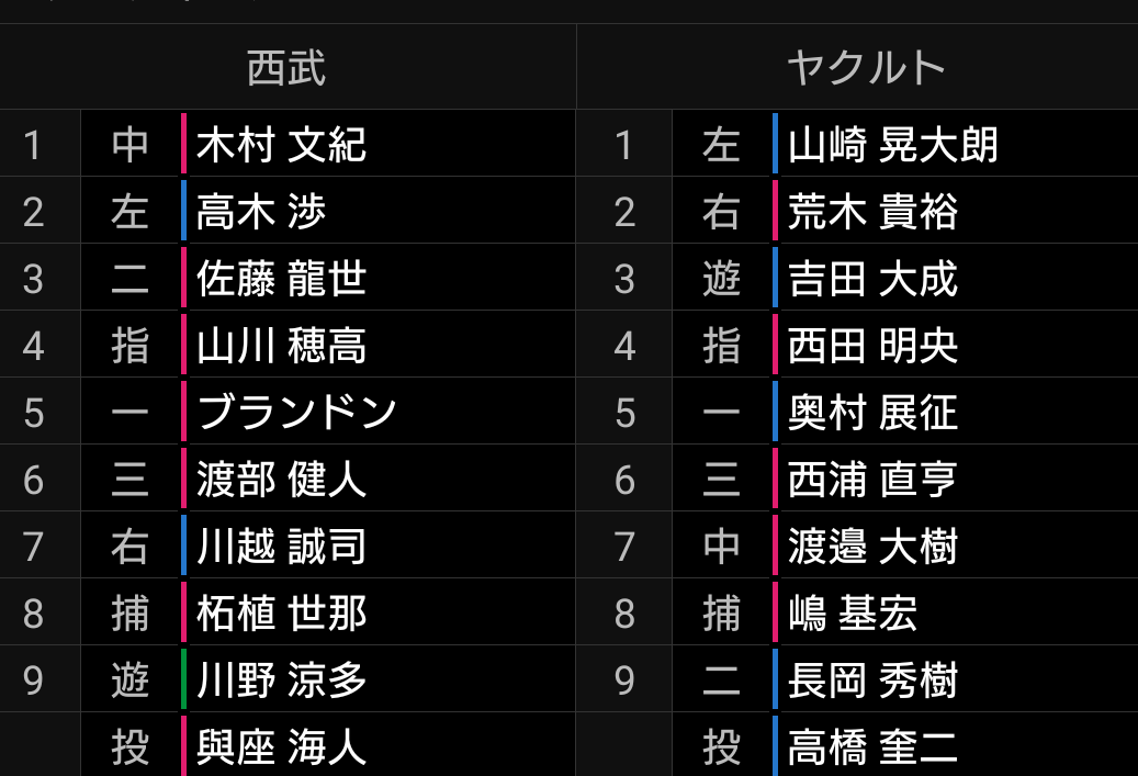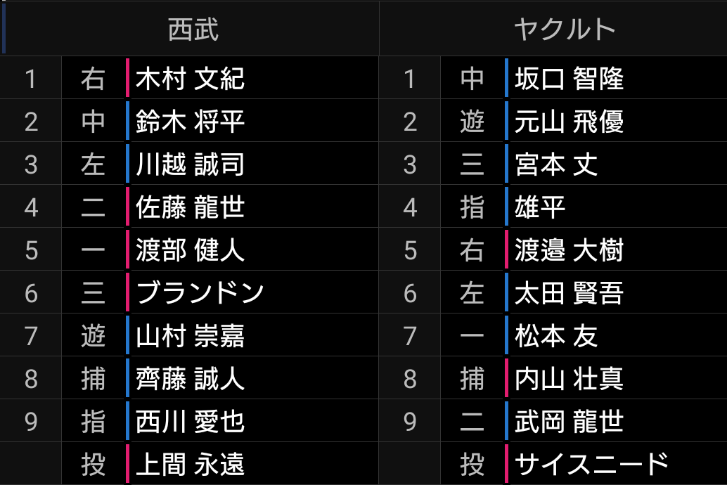 調整登板の先発ニールは、3回1失点とまずまずでした。中継ぎも吉川、田村とそれぞれ1失点はしたものの、今日は打線が繋がりませんでした。
