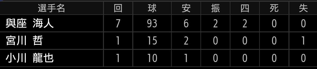 前回よりは良かったですが、空振りも少なく、球のキレはまだまだです。全体的にまとまってはいたので、抑えてはいますが、イースタン相手ならもう少し空振りが取れるようになりたいです。