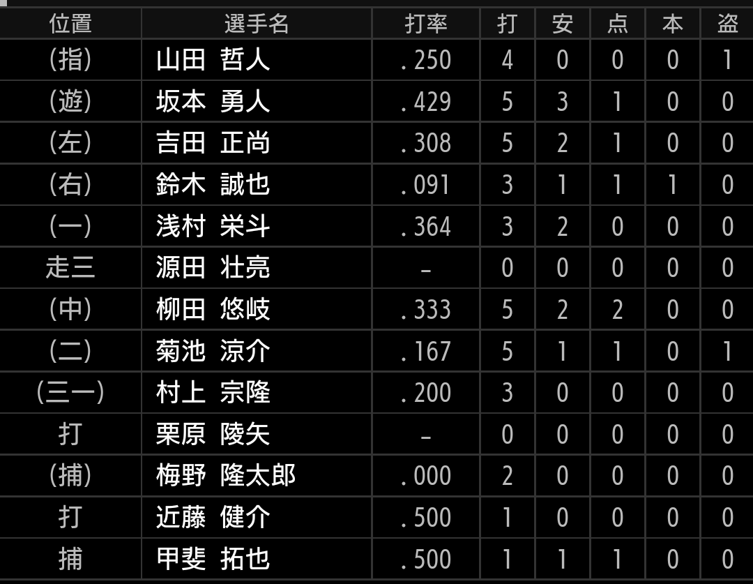 源田、平良のライオンズ選手達は大活躍とはいきませんでした。