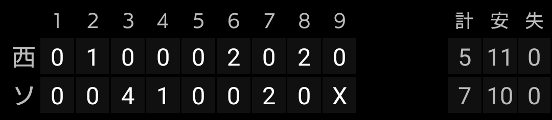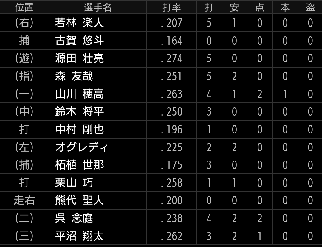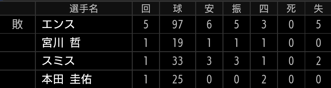 その後は、5回は1アウトから金子選手が、6回はノーアウトから山川選手が出塁しますが、得点にはなりません。7回には2アウトながら1、2塁のチャンスを作りますが、またしても得点には至りませんでした。