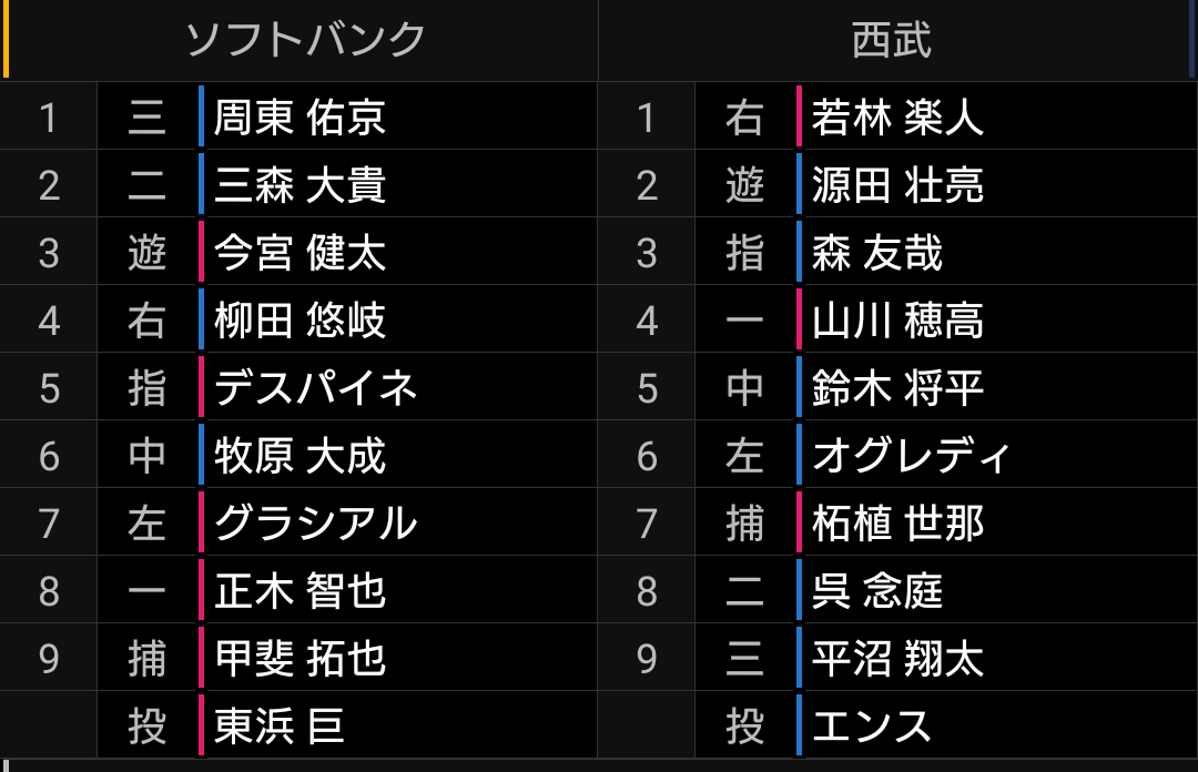 3連敗は避けたい、天王山のソフトバンク戦です。