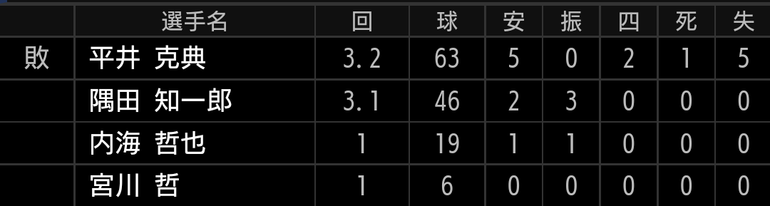 先発平井投手が序盤で5失点と、今のライオンズ打線には荷が重い点差がついてしまいました。