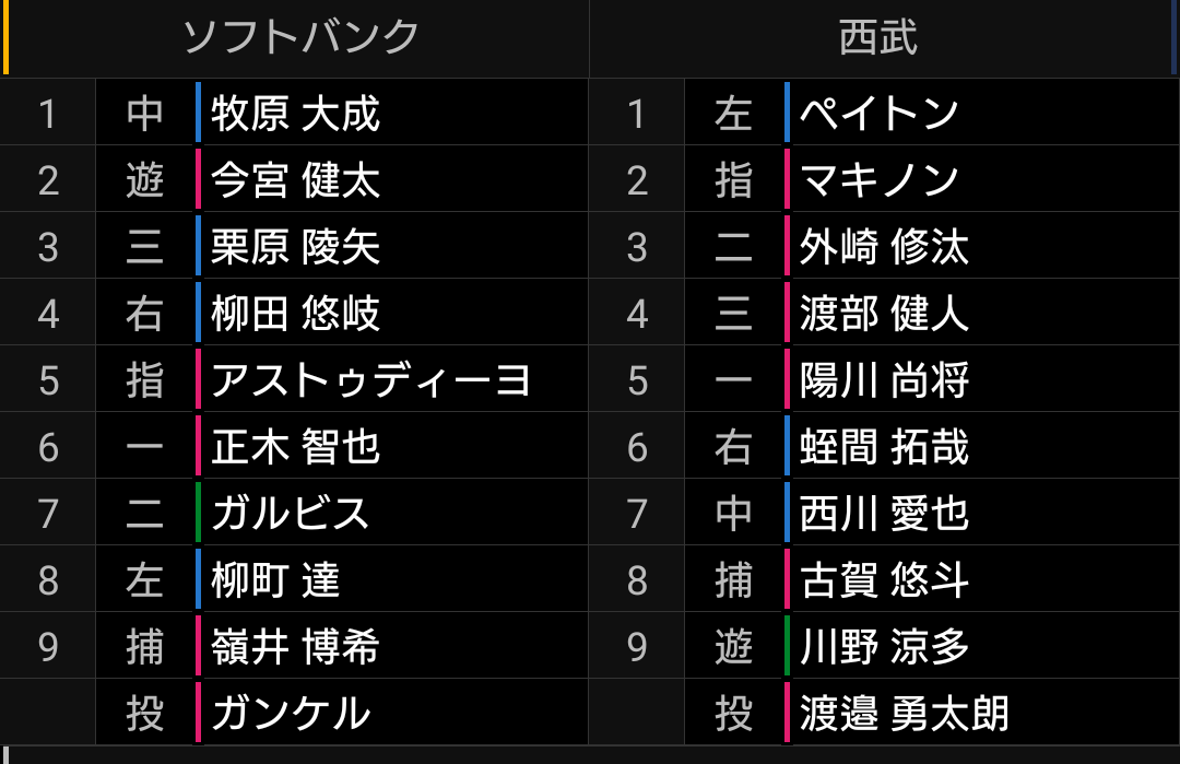 フットワークは軽いのですが、ミスの多い選手です。野球脳も高めて落ち着いてプレイしたいです。ソフトバンクはガンケル、有原投手と新戦力に加えて、主力中継ぎの松本投手も投げましたが、ライオンズ打線は11安打と良く打ちました。