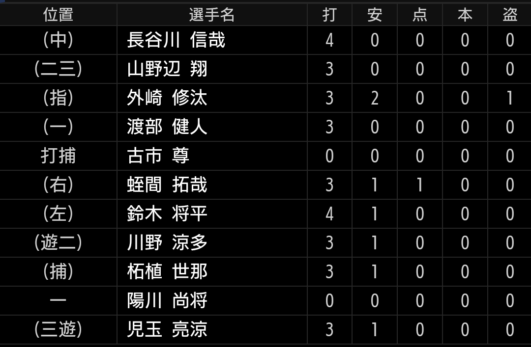 山川選手以外で打てる選手が出てきてもらいたいです。