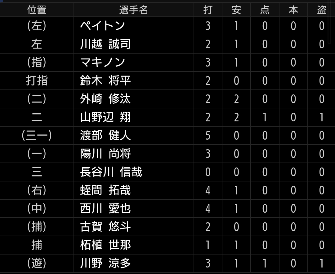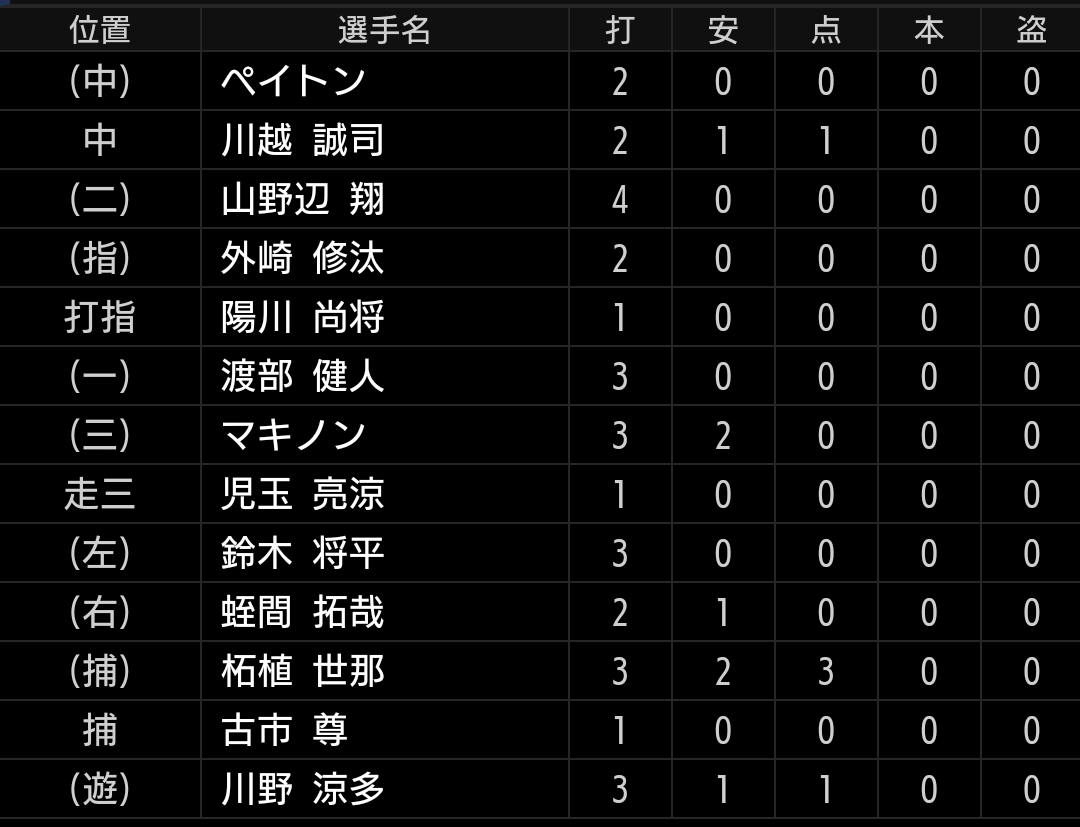 しかし、古賀選手がバント出来ずに追い込まれ、さらには見逃しの3球三振と昨年もチームとしてミスの多かった小技が機能しませんでした。古賀選手は6回もバント出来ませんでしたので、やるならきっちり決めたいです。