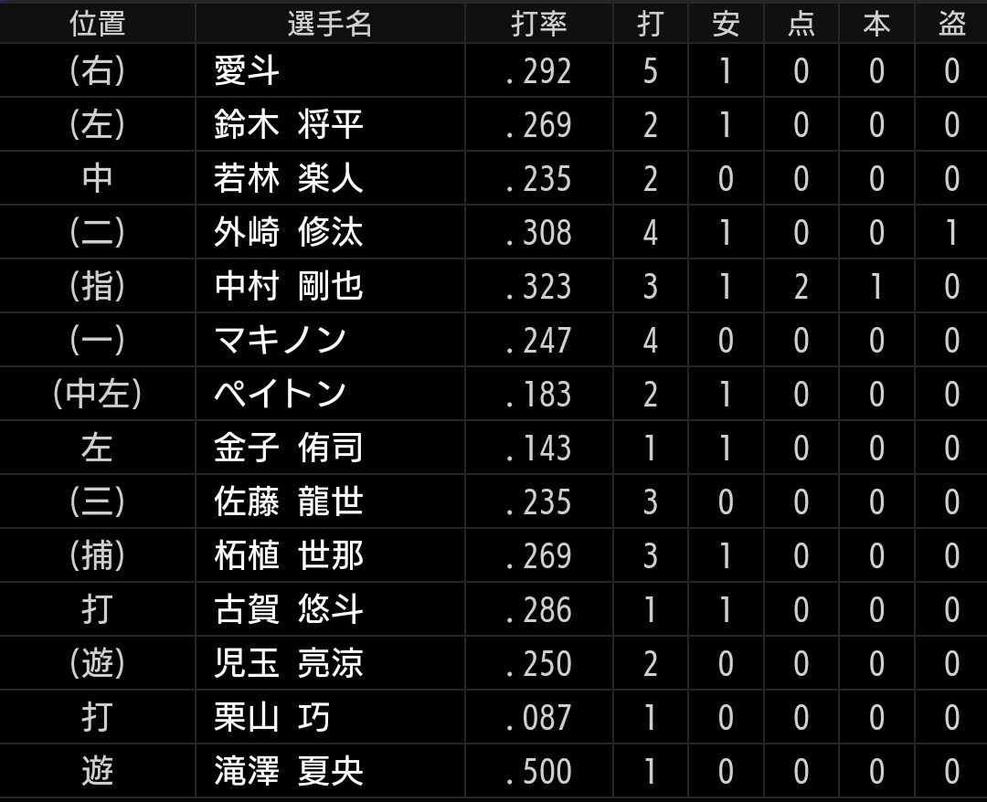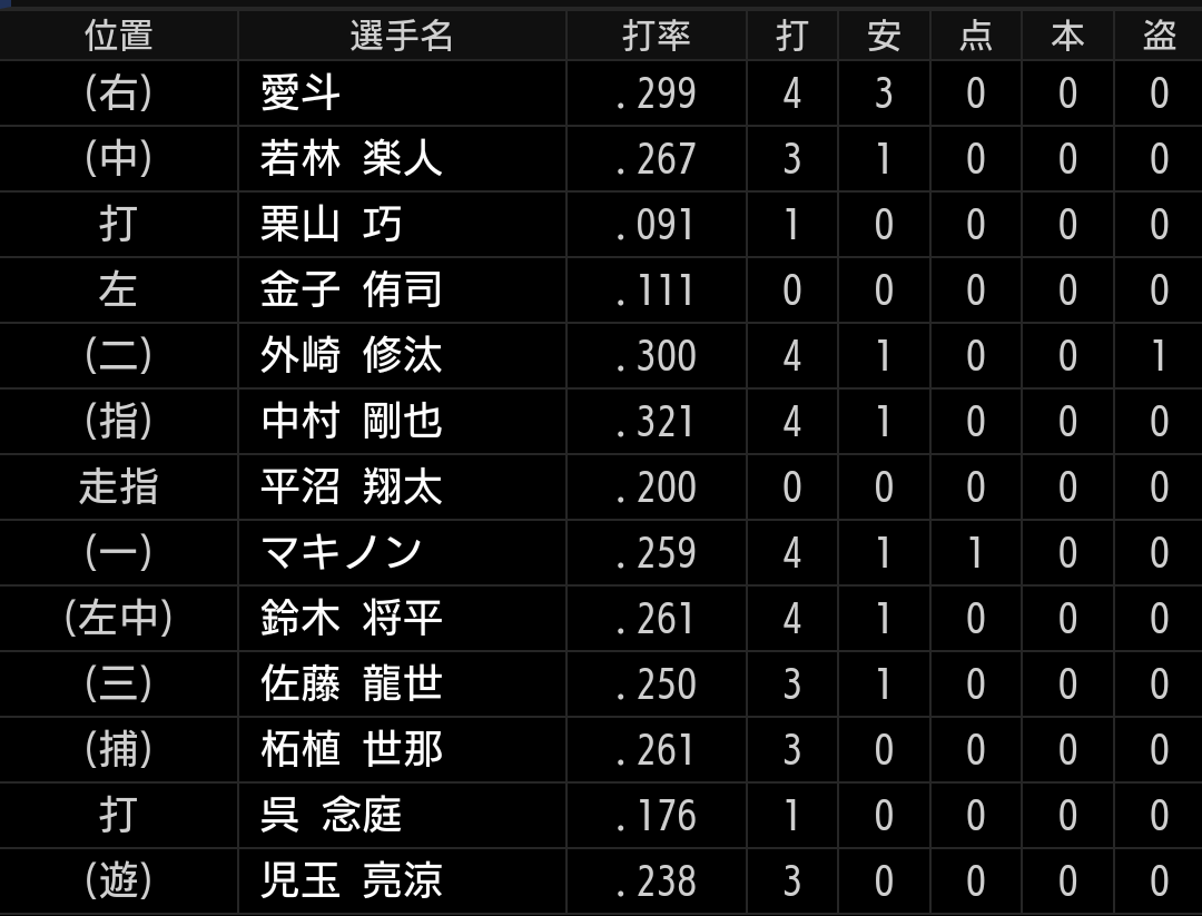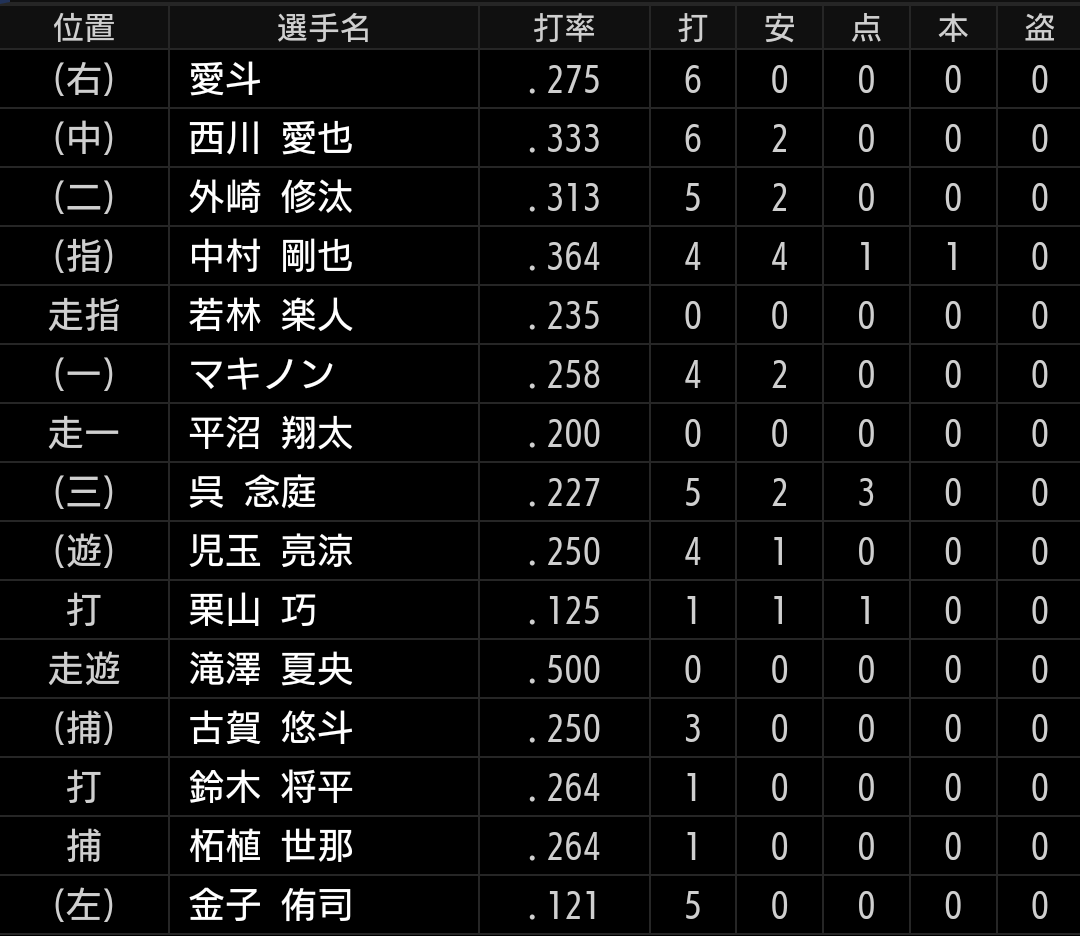 守備の不安はありますが、それでも山川、マキノン、中村選手を同時に使うメリットは打撃です。