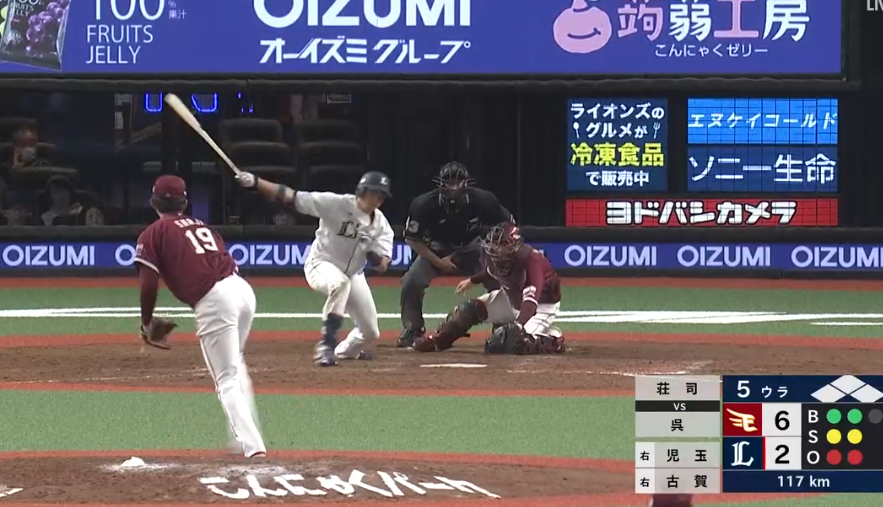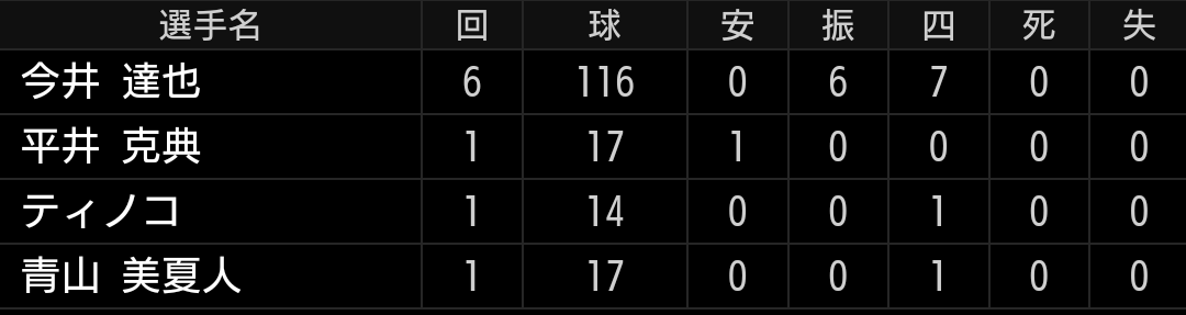 山川選手復帰でサードに回ったマキノン選手の送球エラーで2失点と不運な所もありましたが、大曲投手も2四球は多いです。ストレートは力もあり良いのですが、変化球の精度が低いためストレートを活かしきれません。