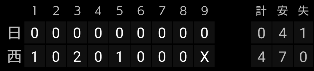 延長12回には、2アウト1、2塁を作りますが、西川選手三振でこの回も無得点でした。
