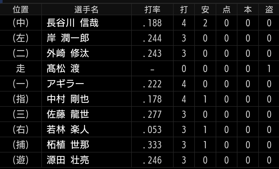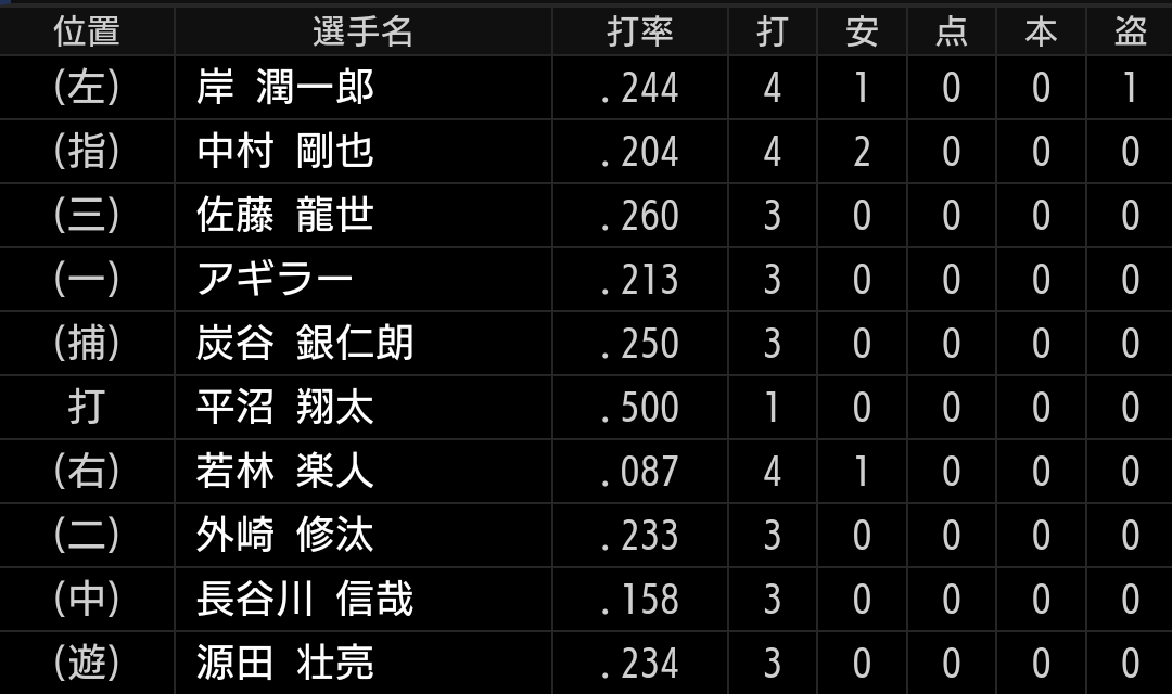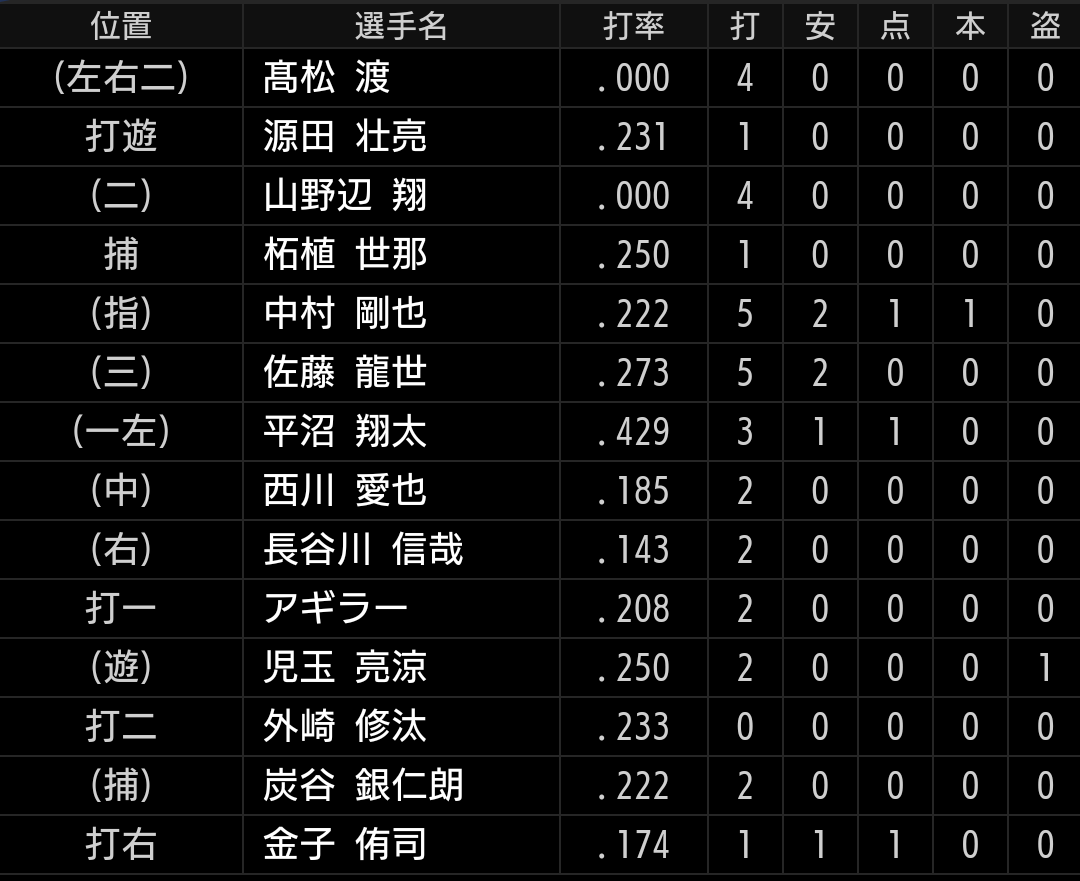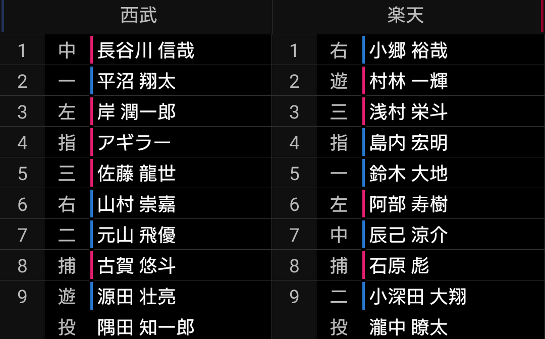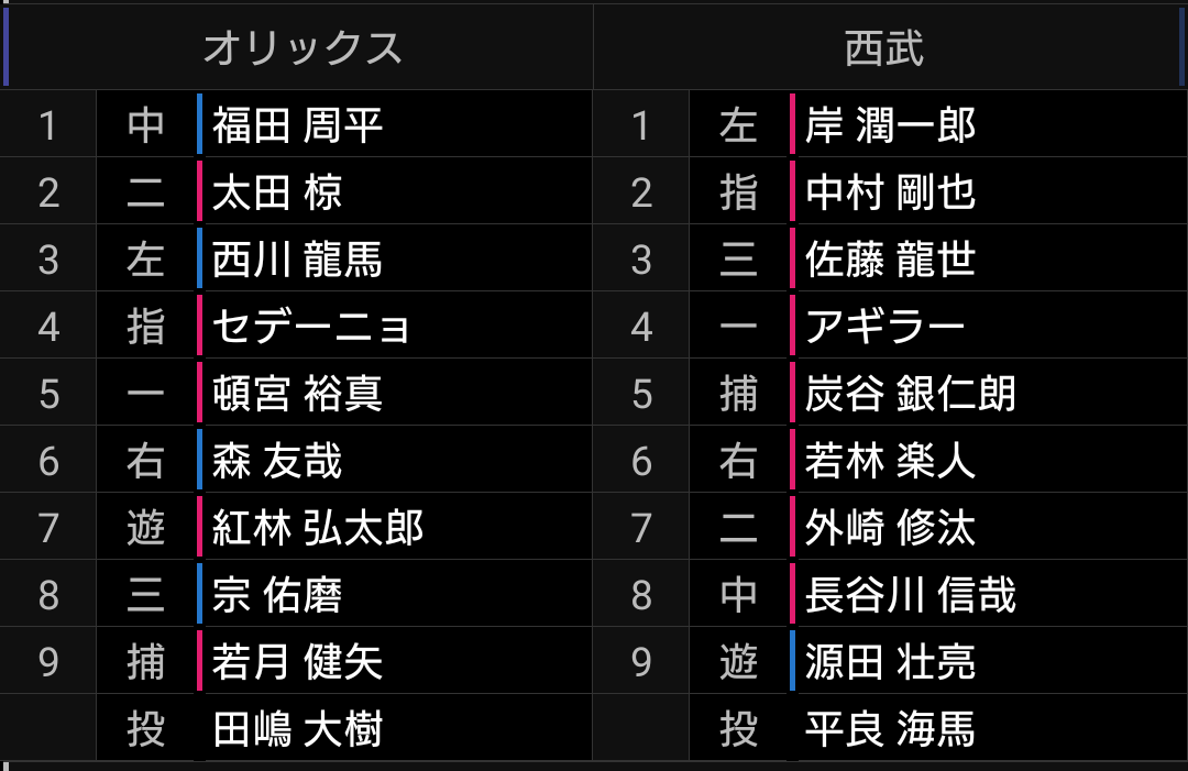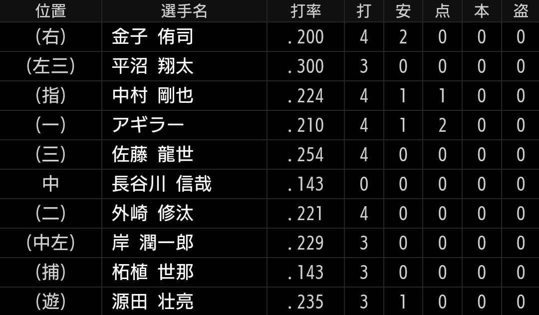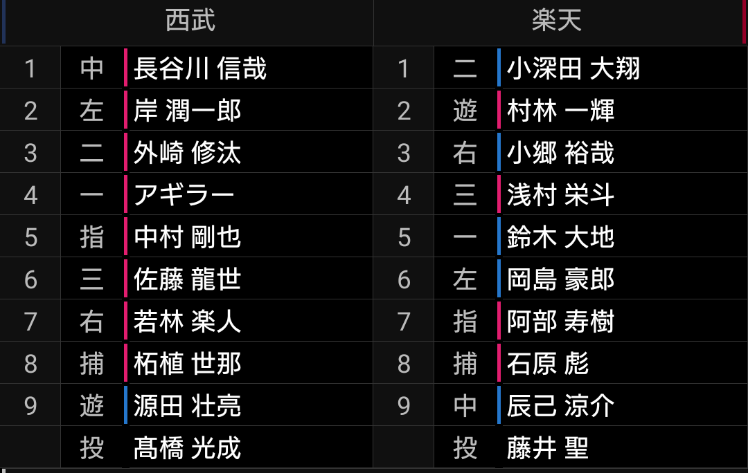 3番佐藤龍、4番中村の予想は外れましたが、昨日、一昨日を見ているだけにまともなスタメンに見えます。