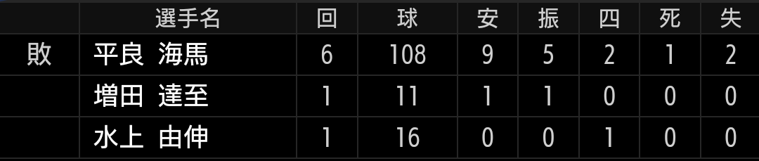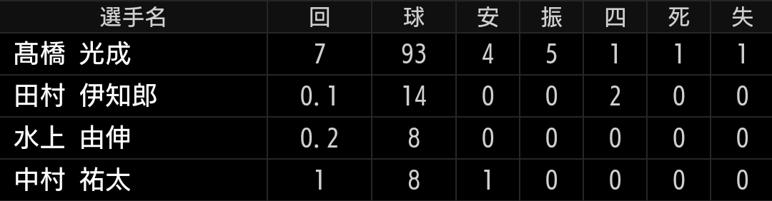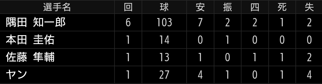 圧倒的な球がある訳ではなく、今季は課題の制球がまとまった事で投球になっている投手ですので、本来なら5回投げ終えた時点で交代させたかったですが、球数も少なく中継ぎも不安定なため続投させましたが、打者3巡目に入り捕まりました。