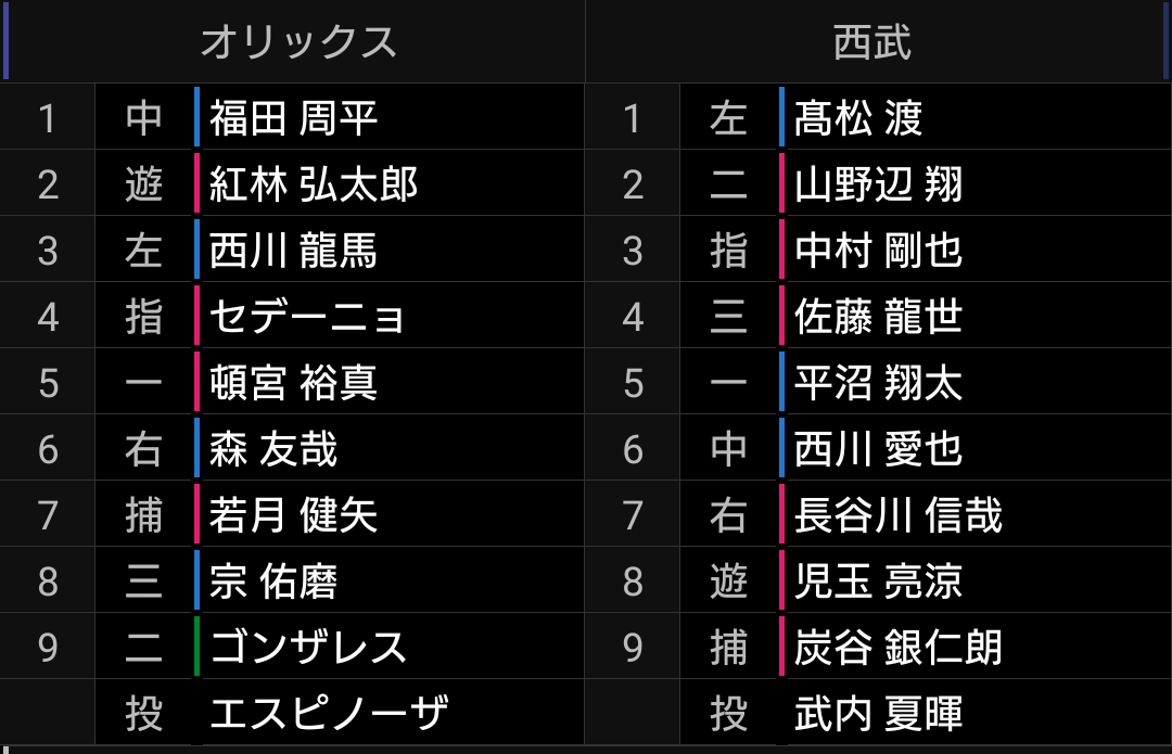 🆚オリックス×西武