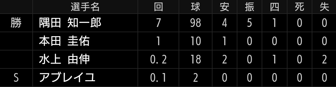 欲を言えば、三振を奪いまくる良い時の隅田投手を見たかったですが、昨日はたくさんの中継ぎが登板しましたので、しっかり試合を作ってくれて助かりました。