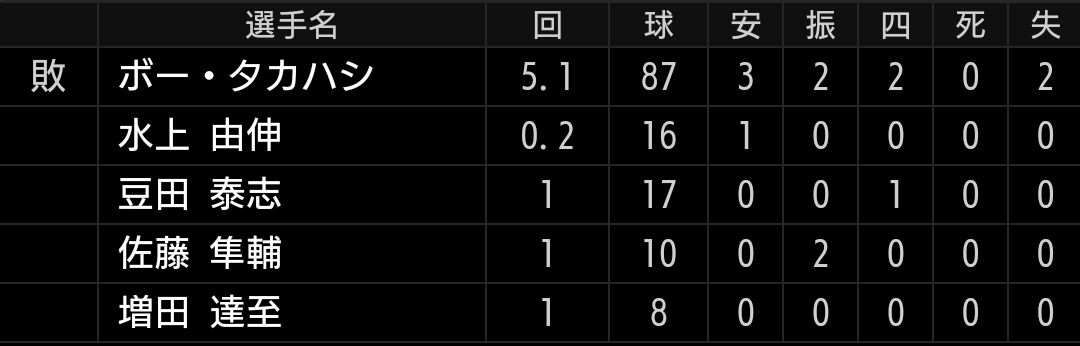 ファームでは青山、羽田投手と若い先発投手が結果を出しています。実績のある松本投手と言えども、前回程度の投球だとローテは厳しくなります。