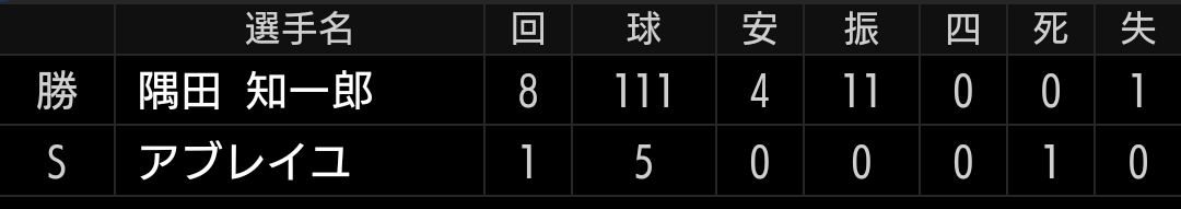 その後もピンチは続き自滅の可能性もありましたが、バタバタしない源田選手の所に全部打たせてアウトを取りました。