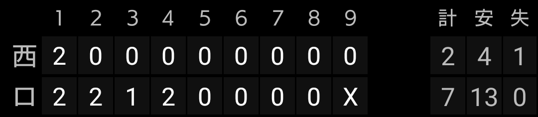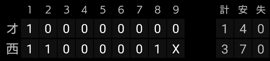 初回、西川選手が四球で出塁すると盗塁で2塁に進み、