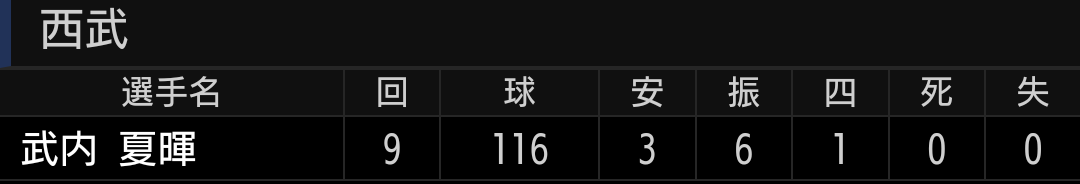 渡辺監督、豊田コーチどちらのプランか分かりませんが、目先の事だけでなく、先の事(来季)も考えて壊さないように運用してもらいたいです。