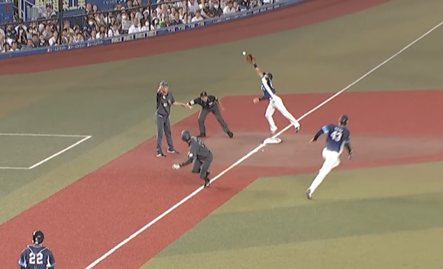 初回の守備での好プレーでも足を気にする素振りがありましたが、3回は送球時に痛がる顔をしました。