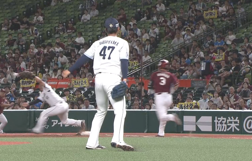 ロッテの茶谷選手も思わず捕ってしまったと言う顔をしましたが、反射的に捕る当たりでしたし仕方ないです。