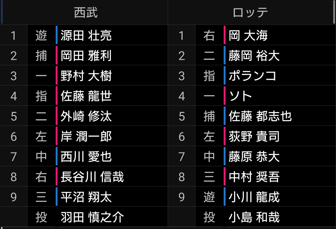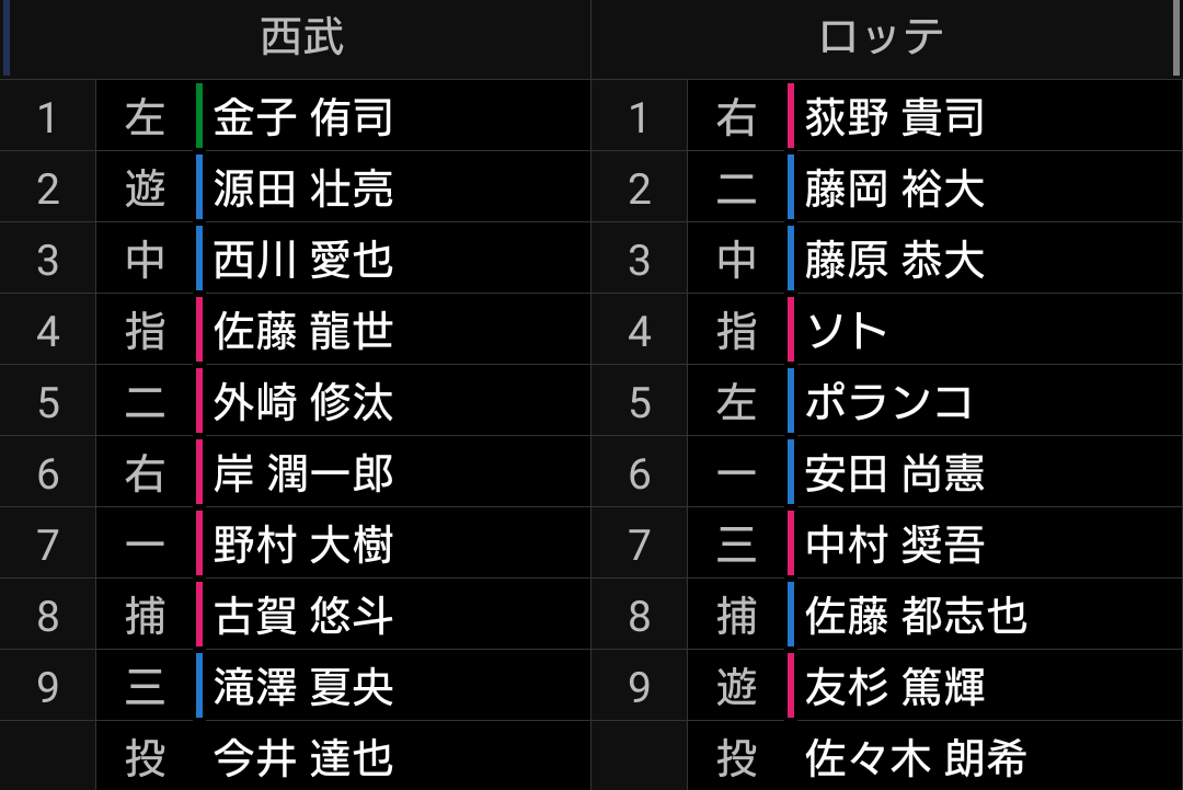 ロッテも、スイッチヒッターの金子侑司選手の右打席をファンに見せるために左投手に代えてくれましたし、昨日、今日と配慮してくれて有り難いです。