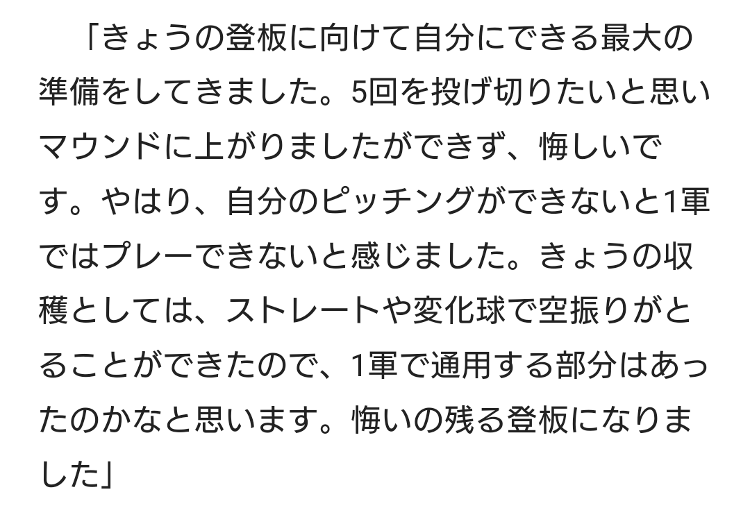 ただ、長打でチャンスを作り得点が取れたのは良かったです。