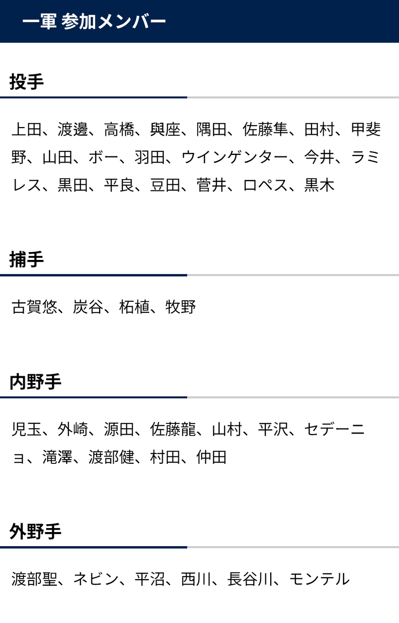 ベテランに加えて、1軍メンバーから漏れた選手が2軍と言った所です。