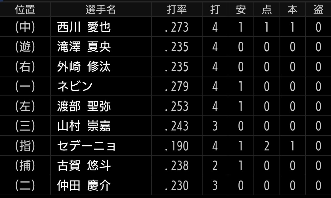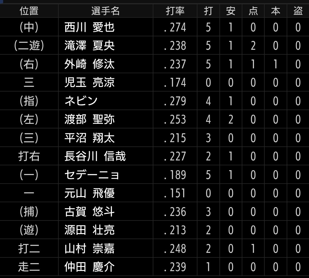 今の打線の状態なら、ローテ投手や勝ちパ相手だと厳しくとも、リリーフB班くらいならこれくらい打てます。