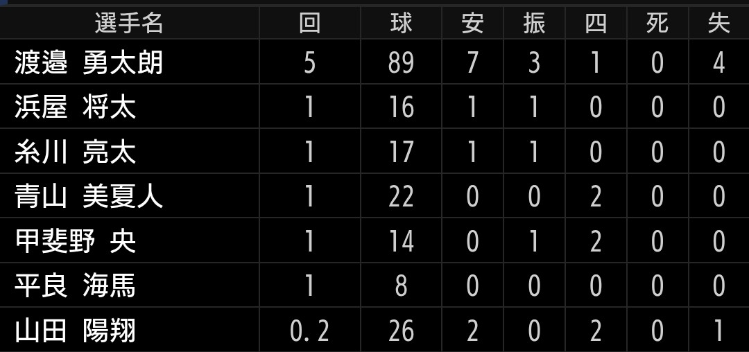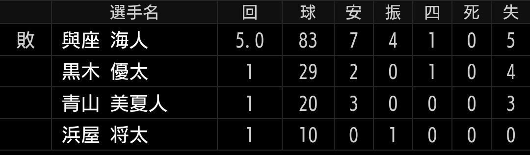 とにかく制球が悪く、ファームでもでしたが変化球も浮き気味でした。逆に、カウントを取りに行くと、球威不足で打たれるの悪循環から抜け出せず大炎上です。